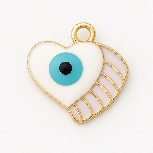 Evil Eye Heart Charm - Gold-Plated Enamel Protection Symbol