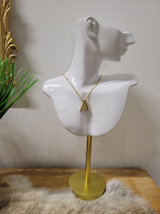 Collar personalizado con inicial de burbuja en 3D | Letras doradas abullonadas | Acero inoxidable