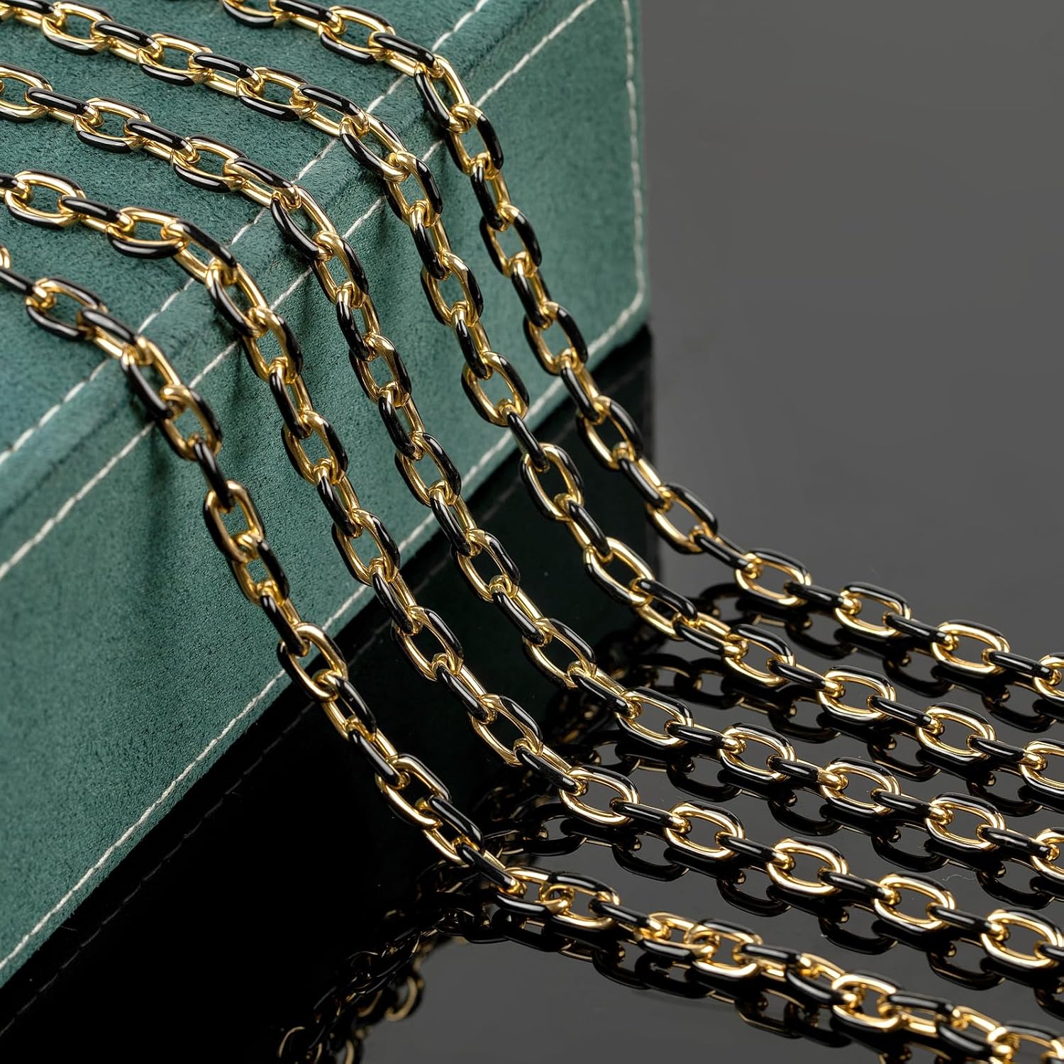 ✨ Cadena sofisticada de esmalte negro de dos tonos ✨