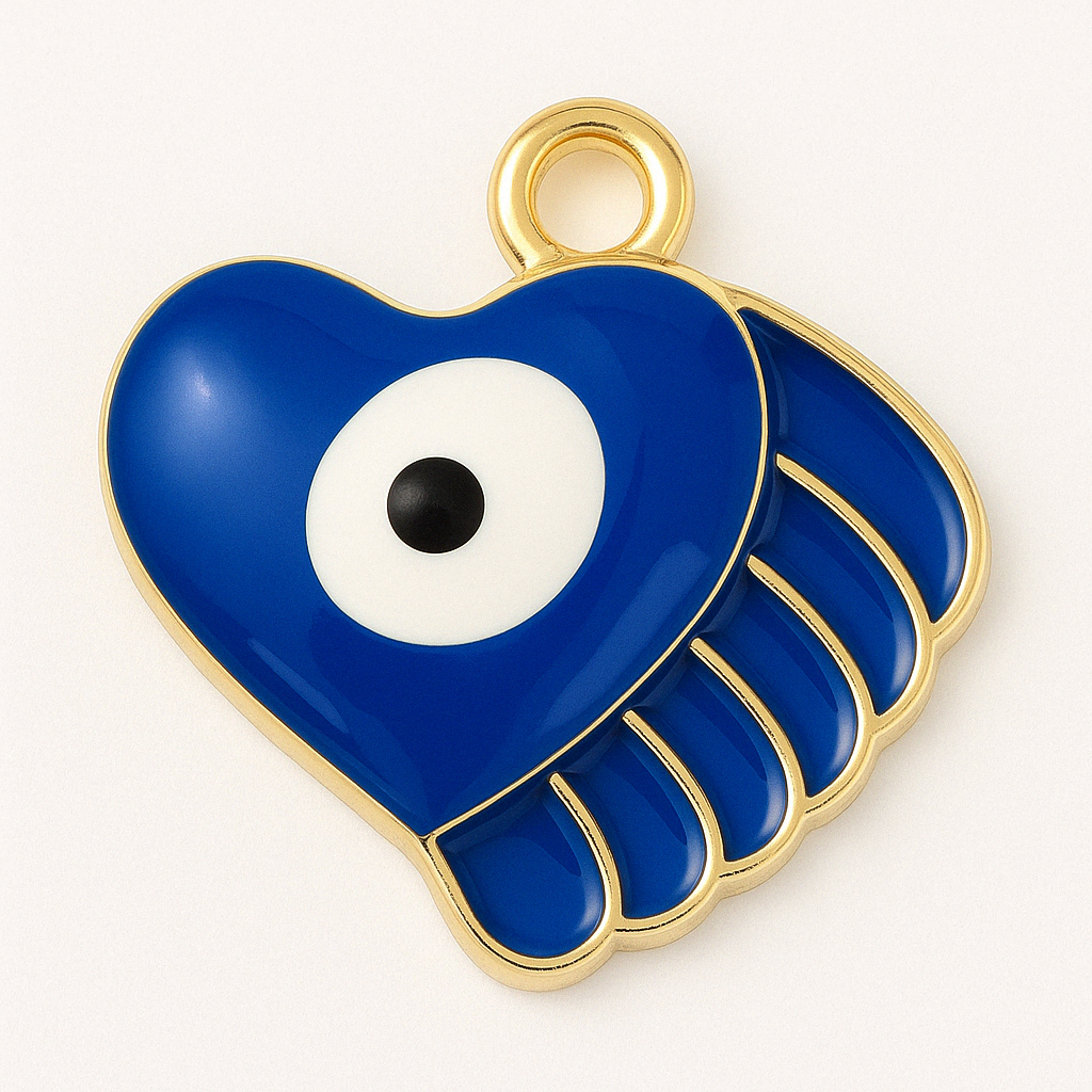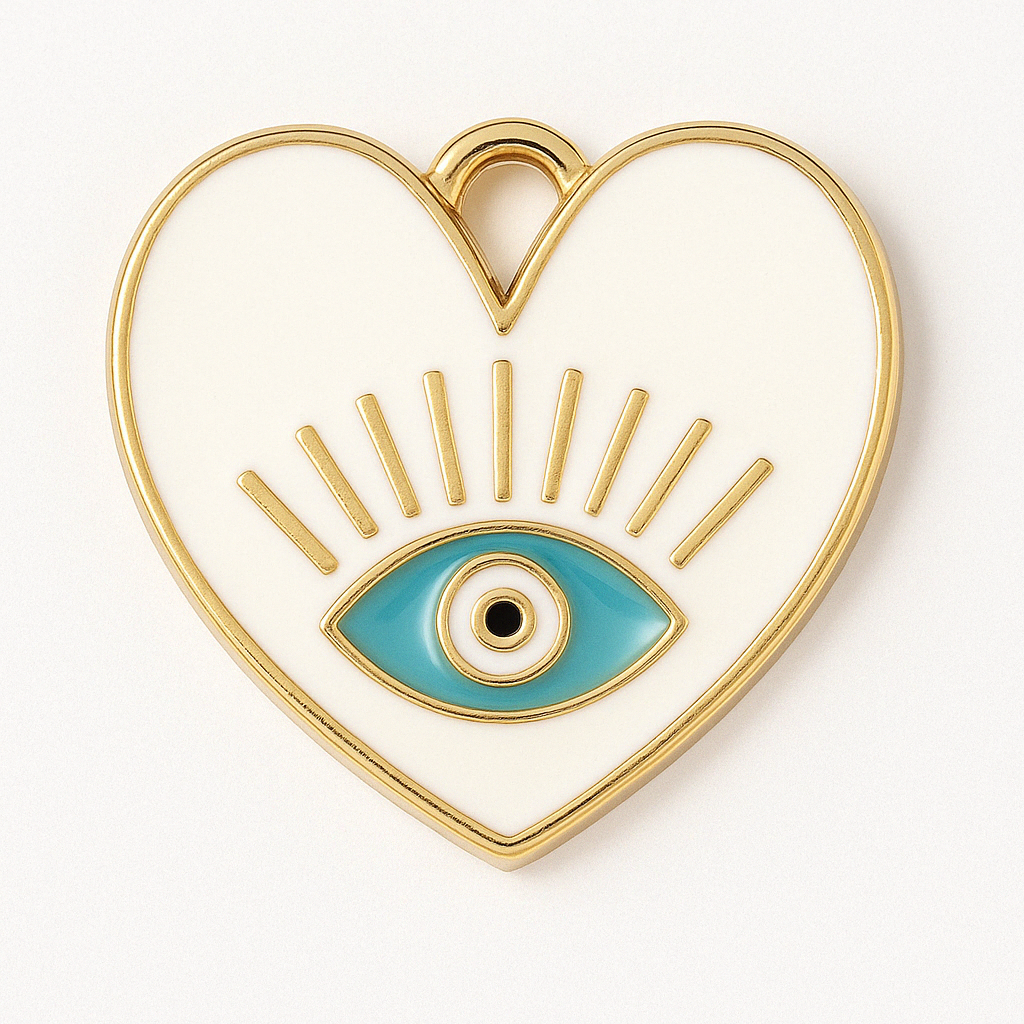 Charm de corazón de mal de ojo - Símbolo de protección de esmalte dorado