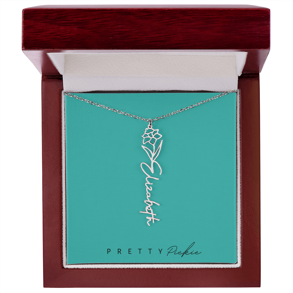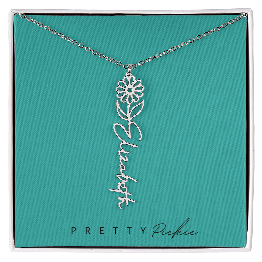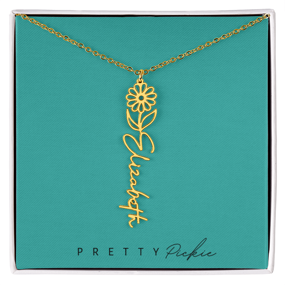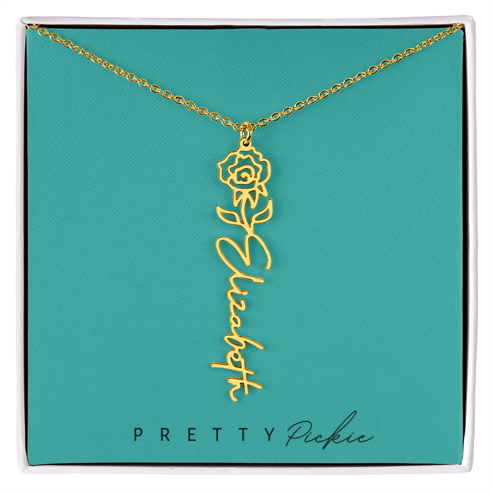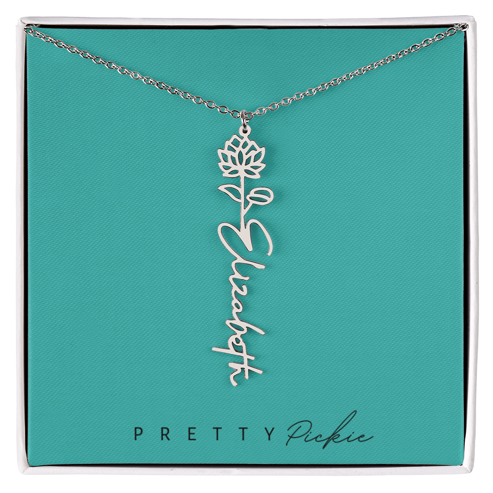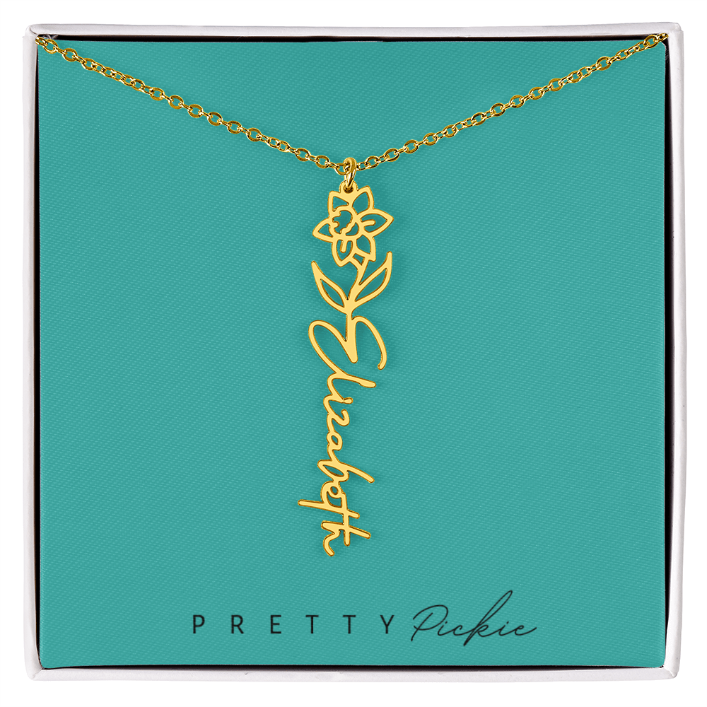Collar con nombre y escritura de pétalos – Edición Flor de nacimiento