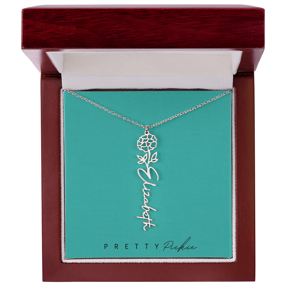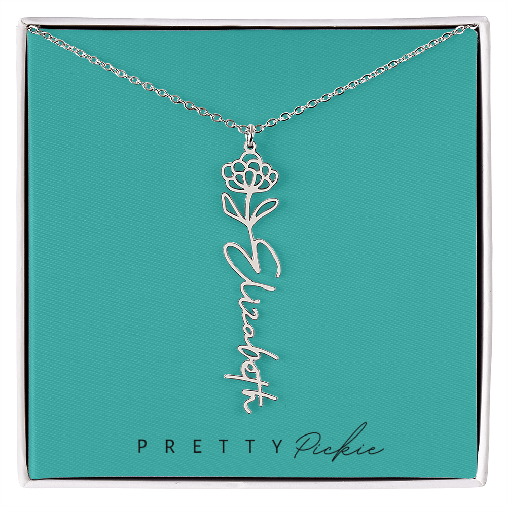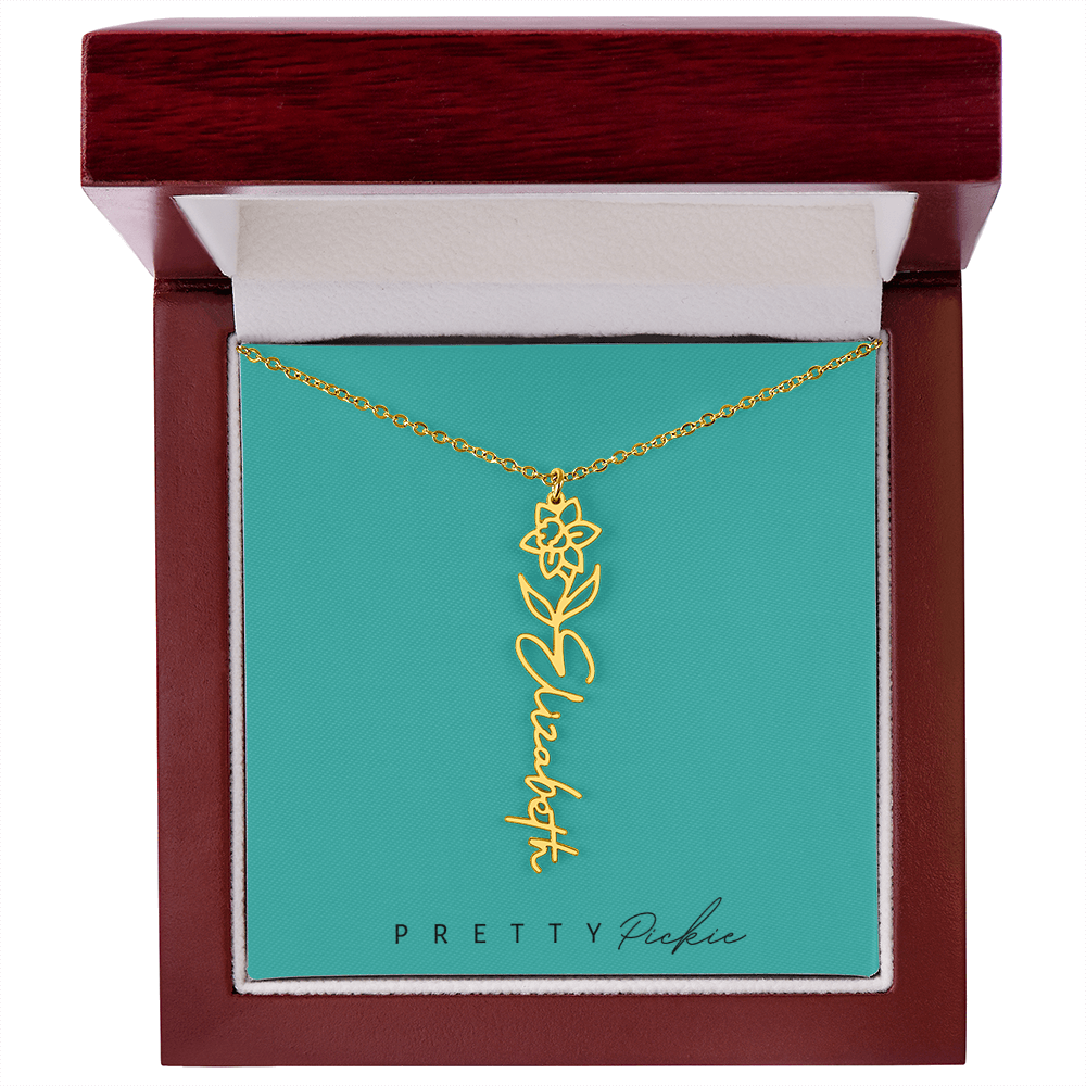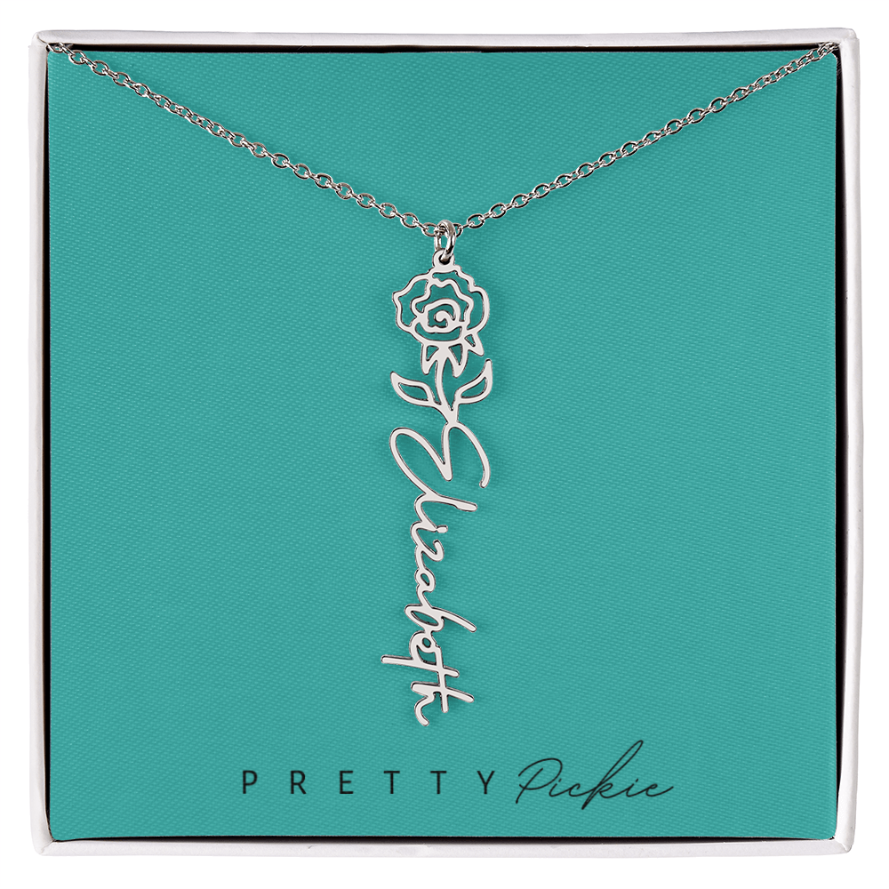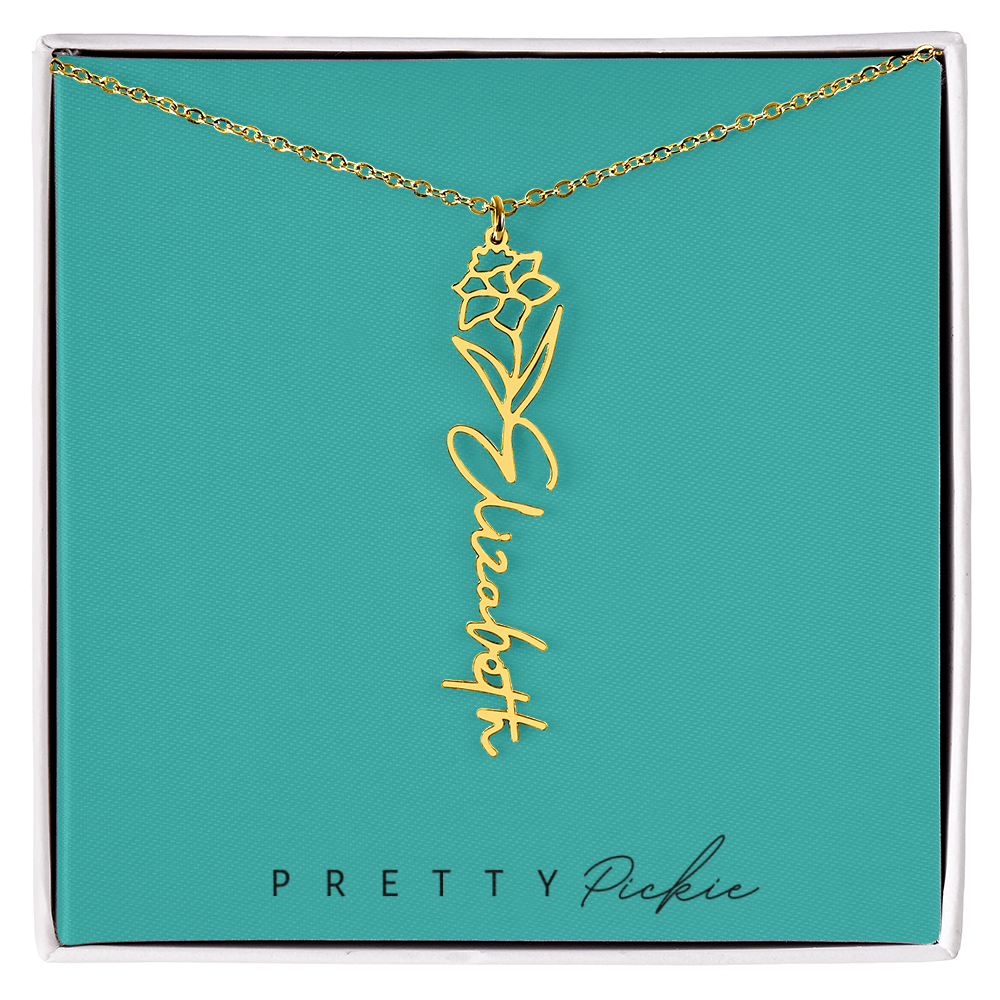 Collar con nombre y escritura de pétalos – Edición Flor de nacimiento