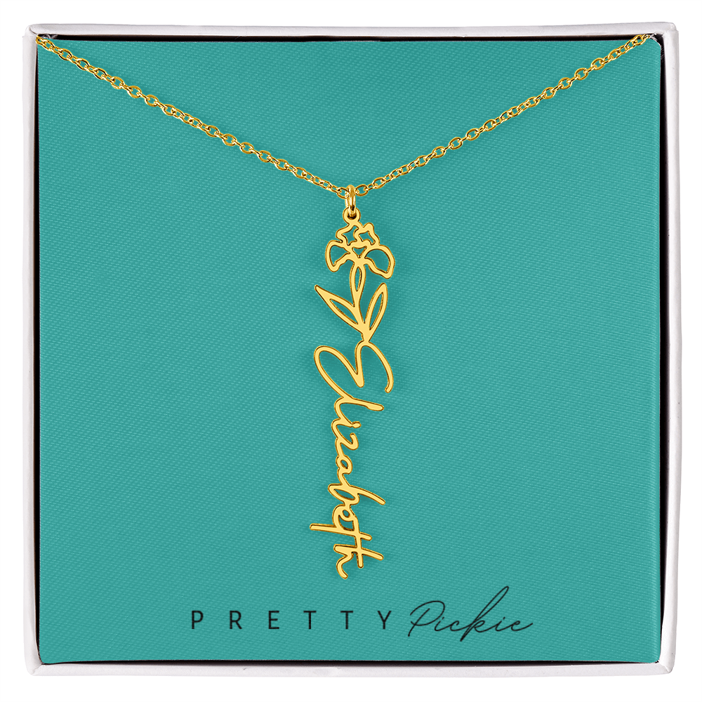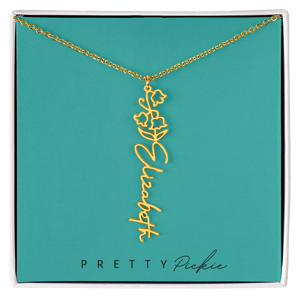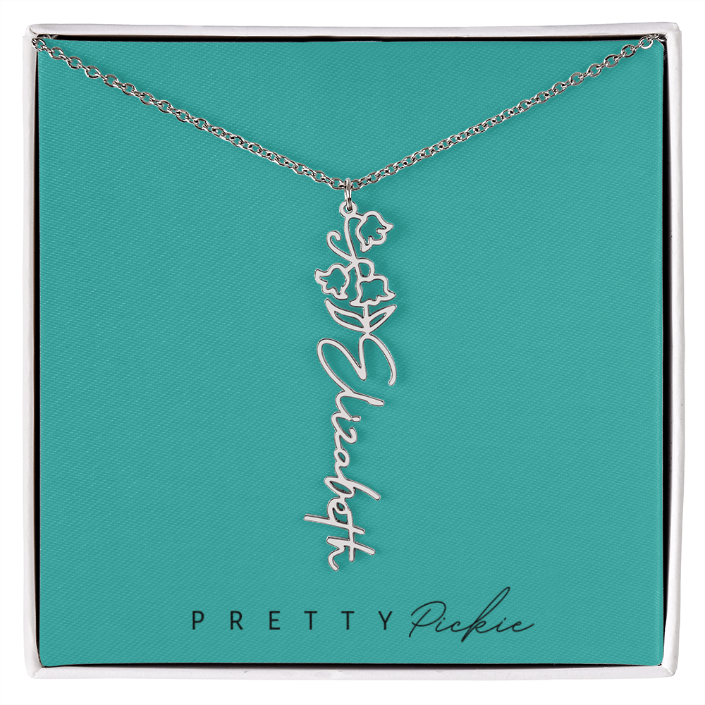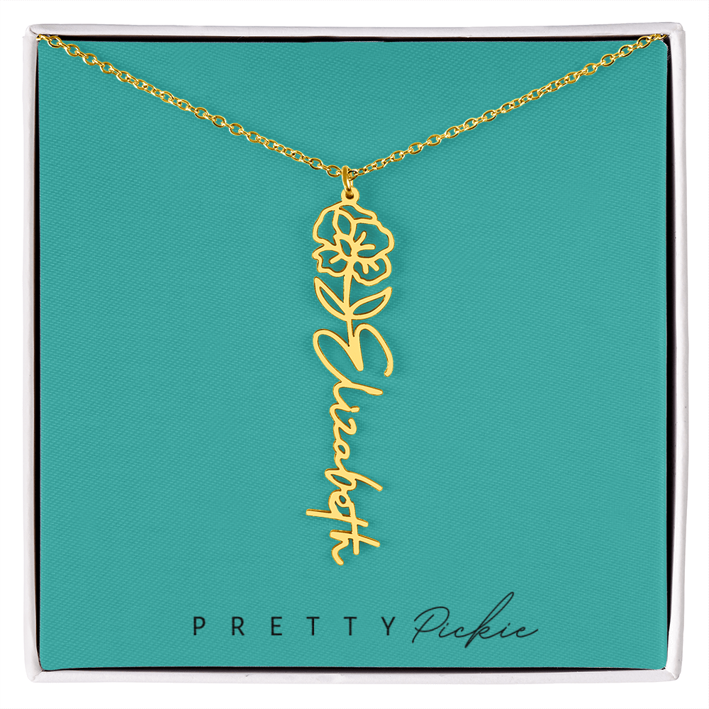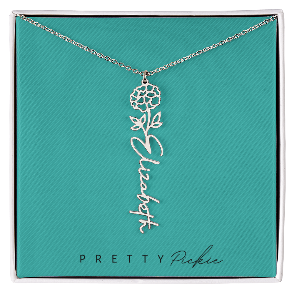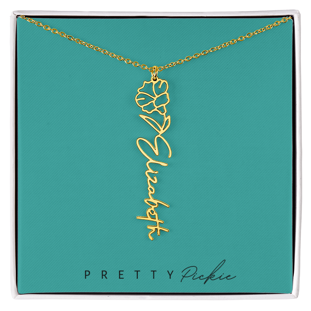 Collar con nombre y escritura de pétalos – Edición Flor de nacimiento