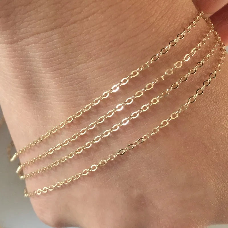 All chains are selected for their weldability, durability, and everyday shine — no plating, no guessing, no cheap filler. Each is made from 14k gold-filled or 925 sterling silver for a waterproof, tarnish-resistant, skin-safe finish that clients love.
