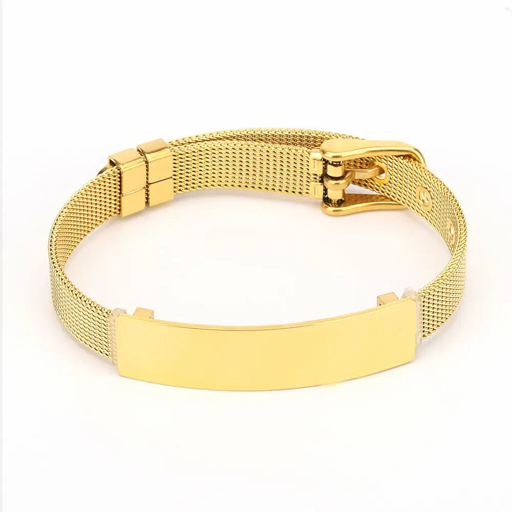 Express yourself with our customizable Bar Bracelet! This sleek bracelet features a bar pendant waiting for your unique touch.
